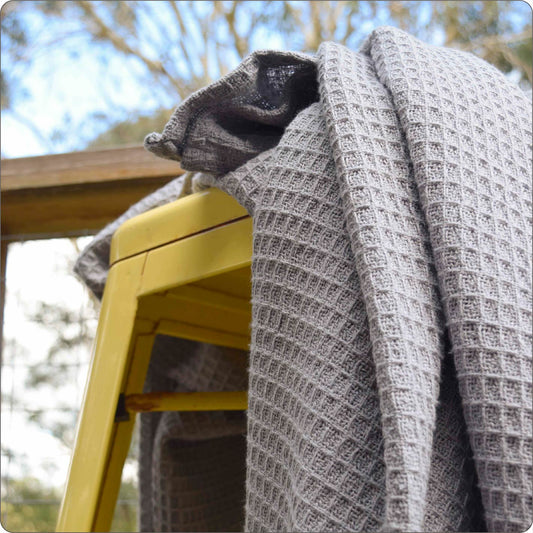 Organic Waffle Blanket 210cm x 210cm Koala Grey