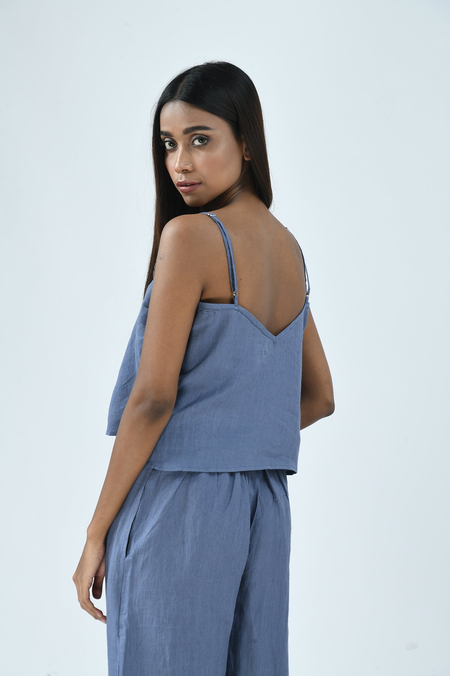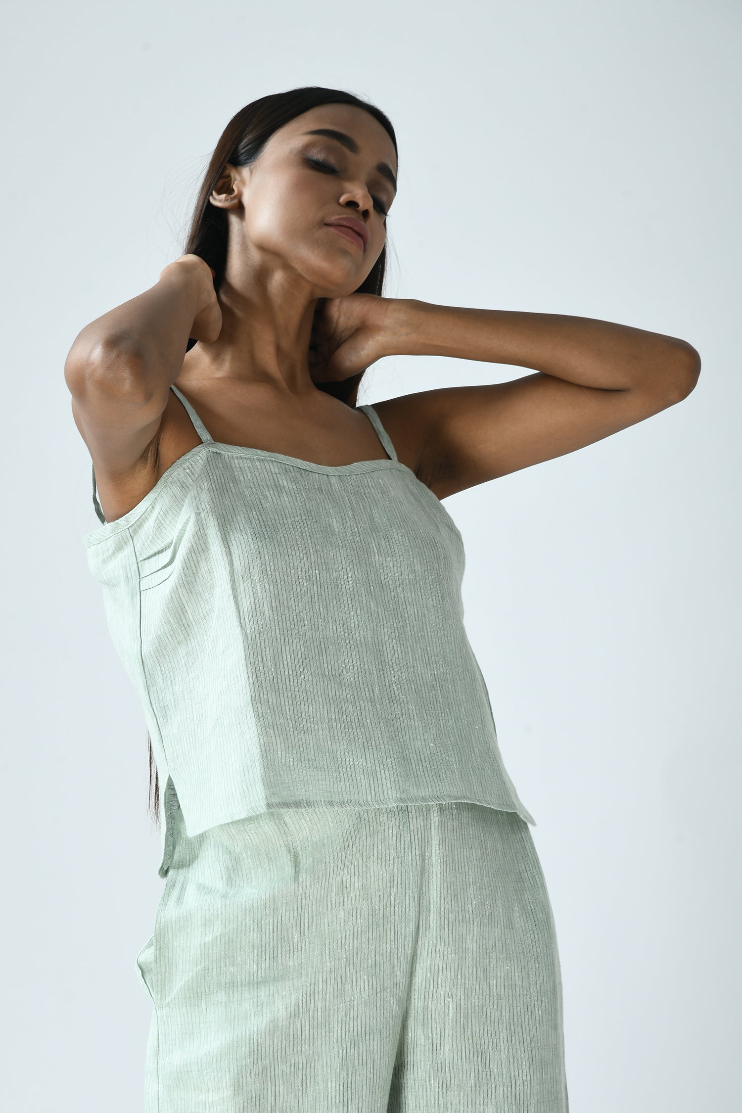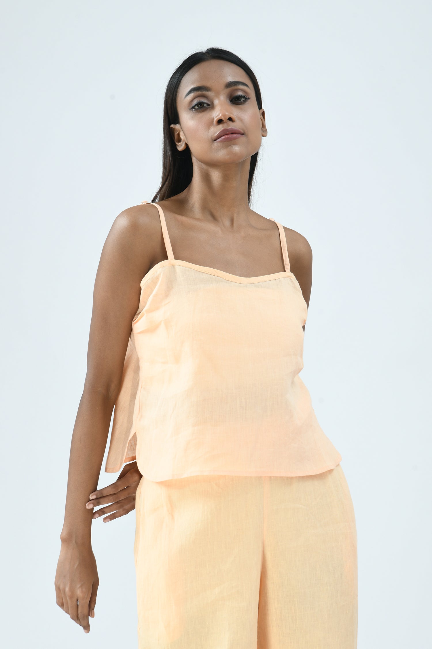 A vintage style cami with elegant lines, slightly cropped to pair perfectly with the Eva shorts and Bobby pants.
