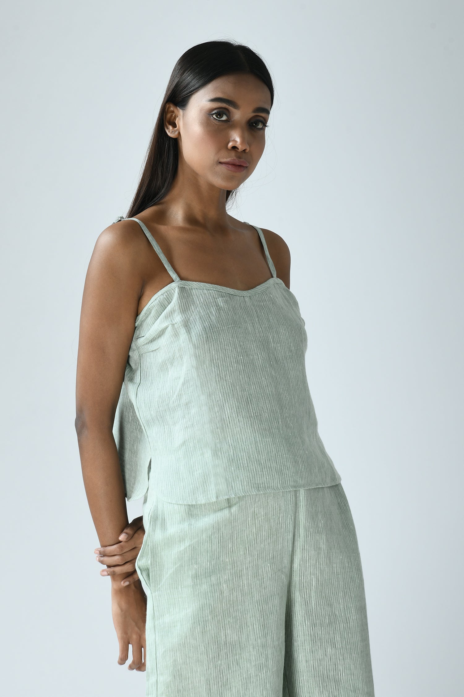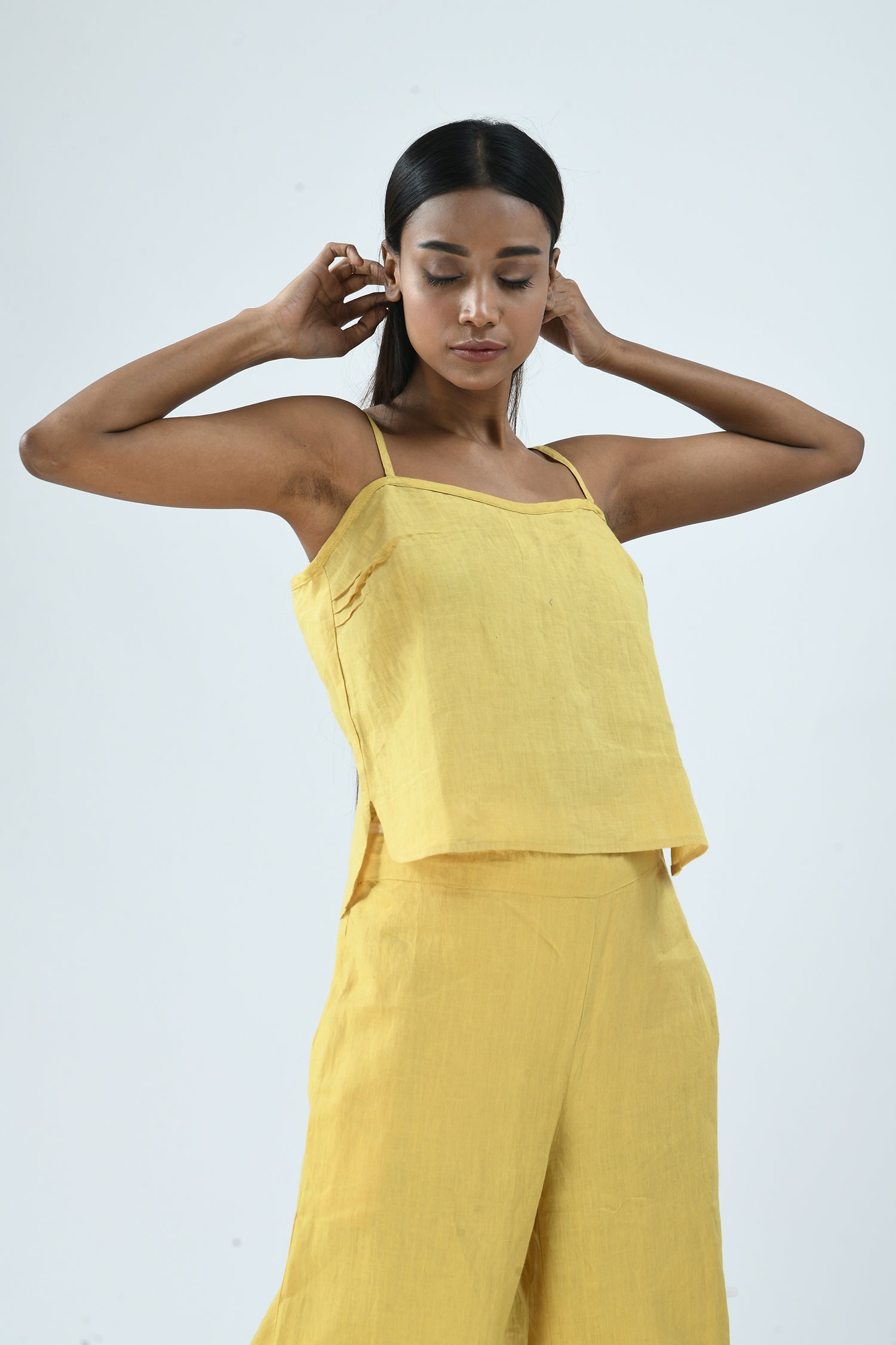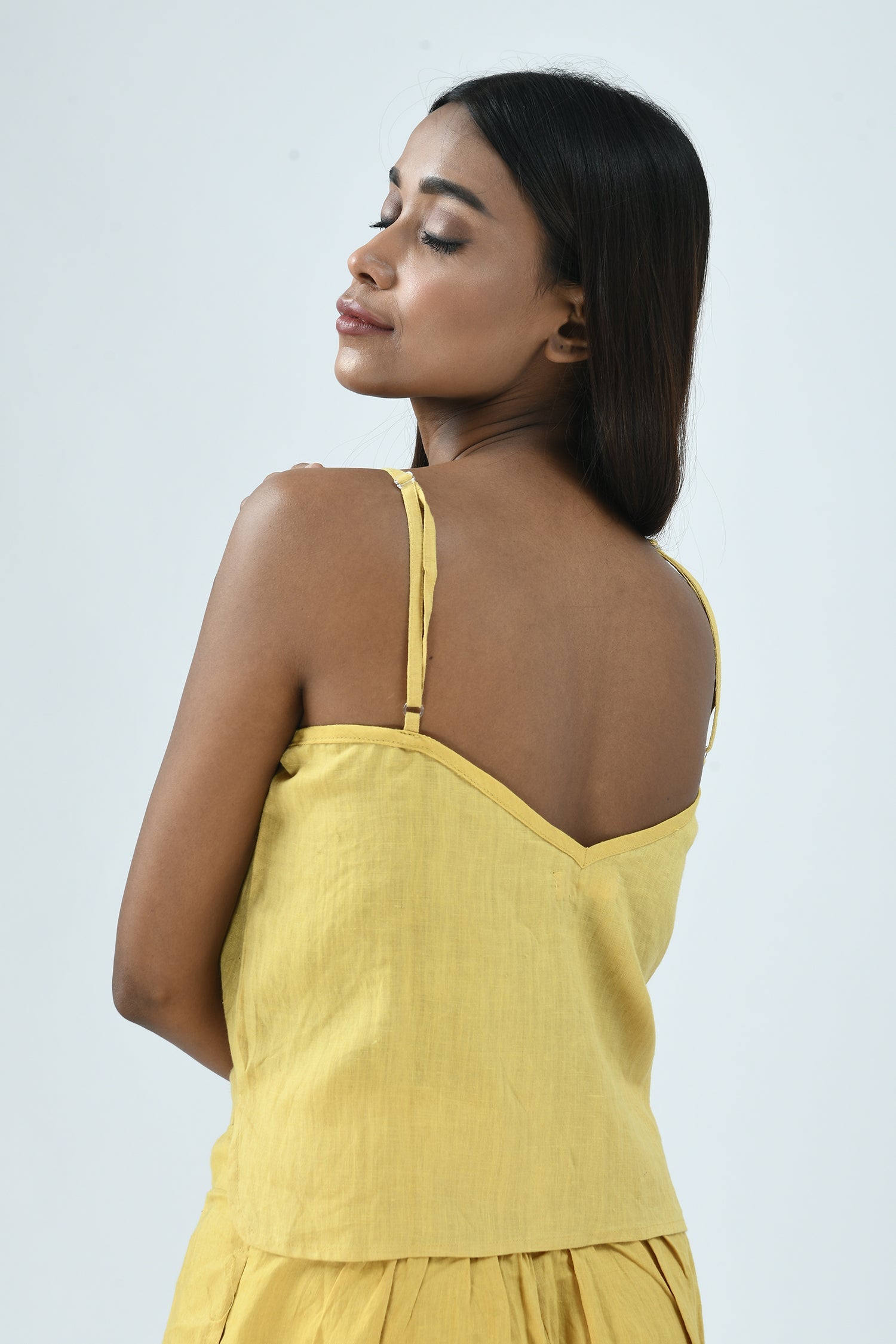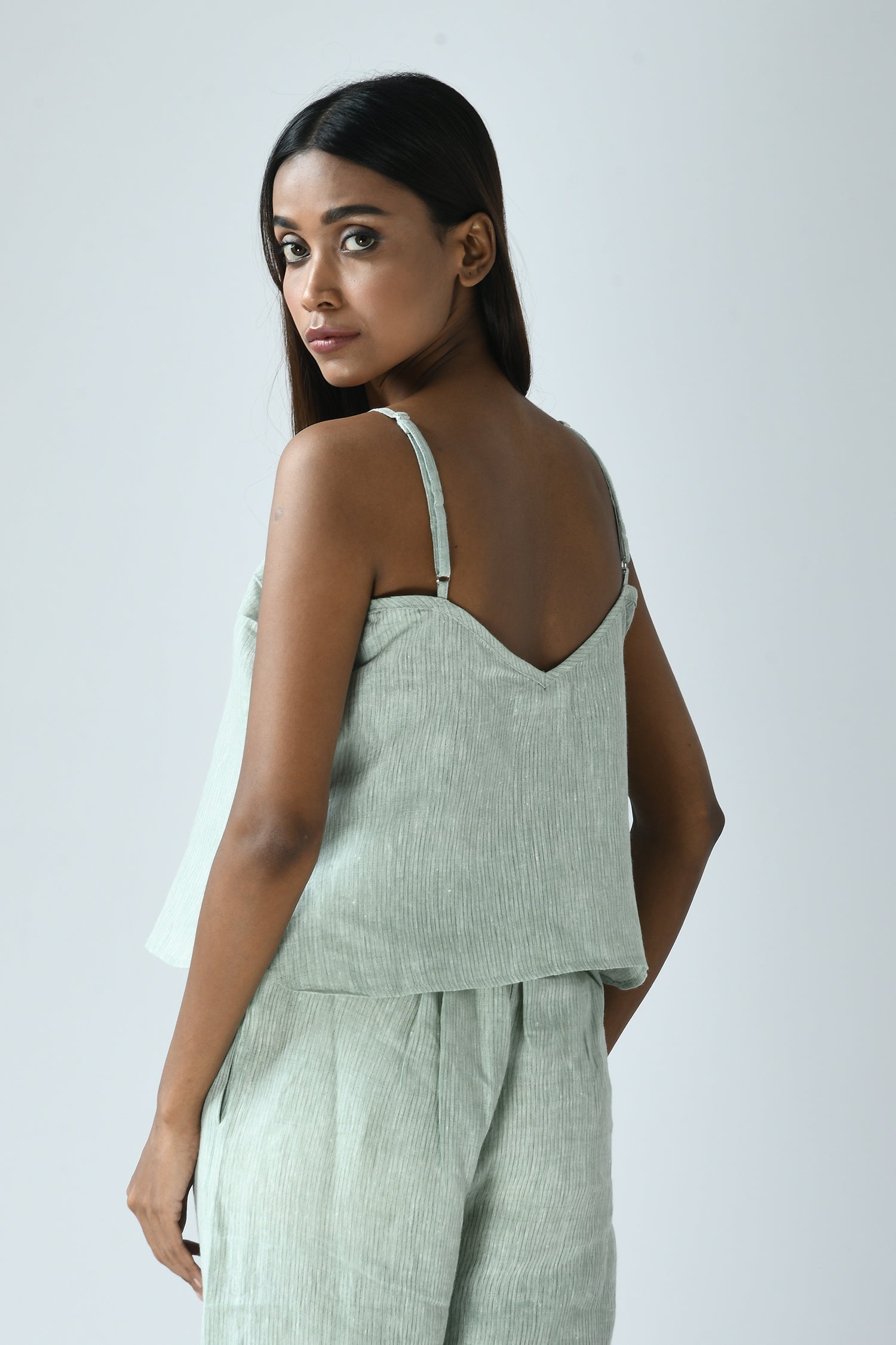 A vintage style cami with elegant lines, slightly cropped to pair perfectly with the Eva shorts and Bobby pants.