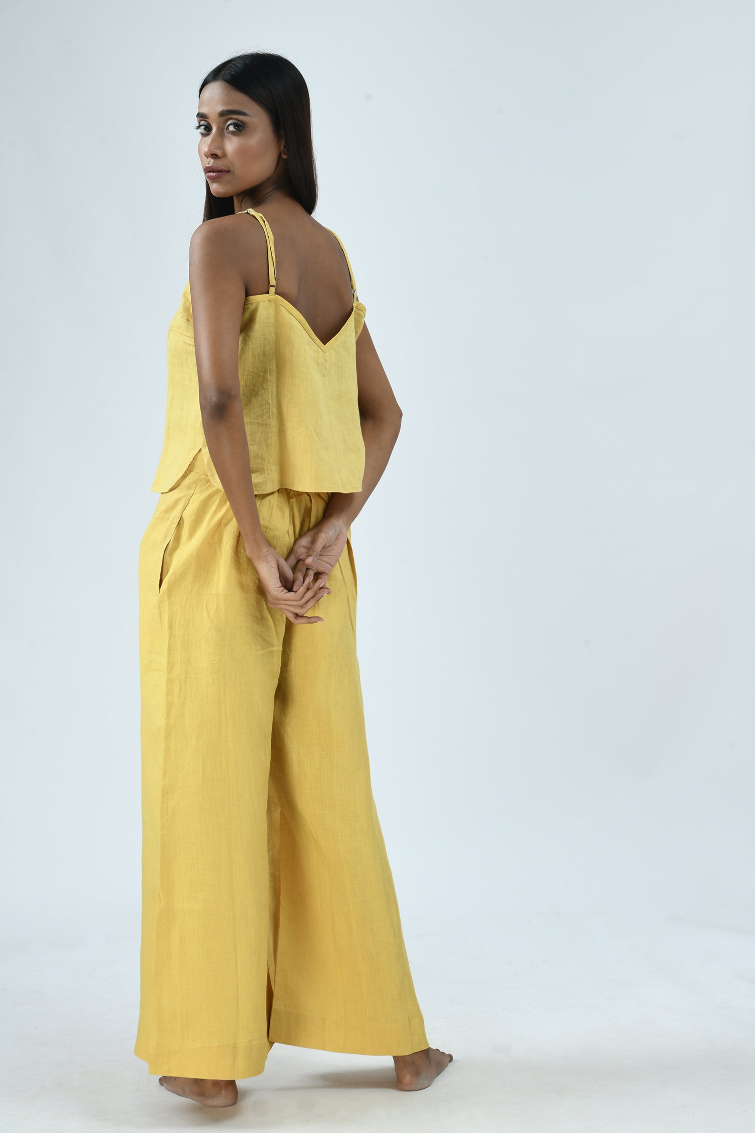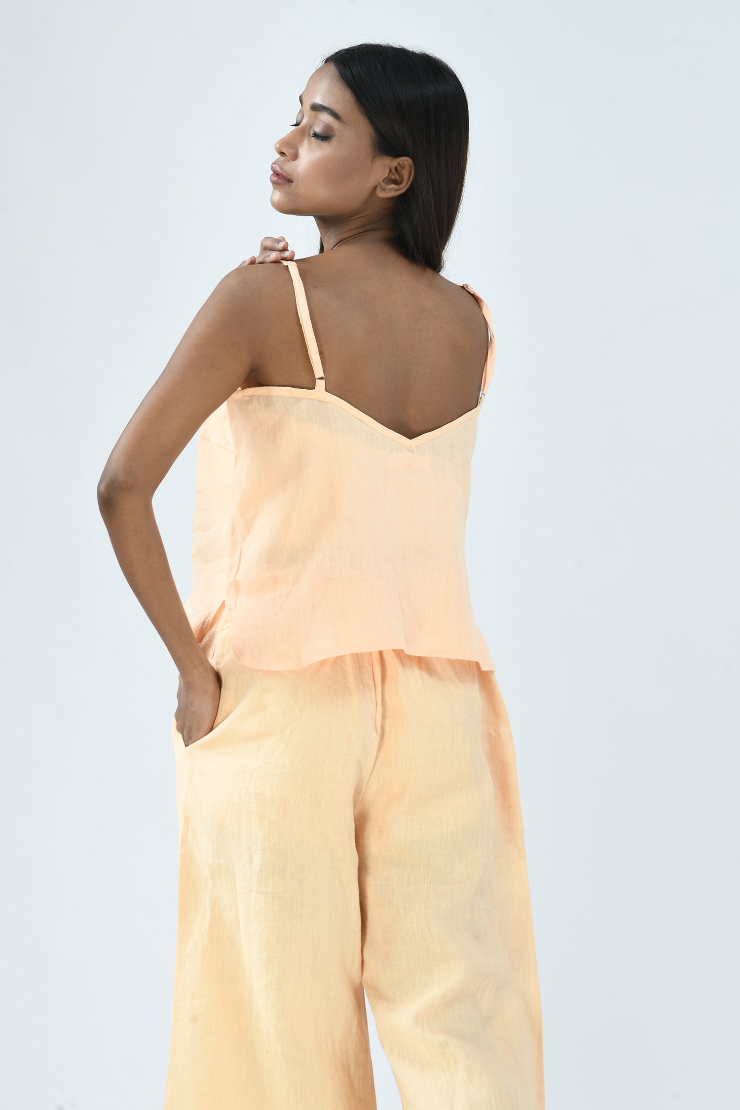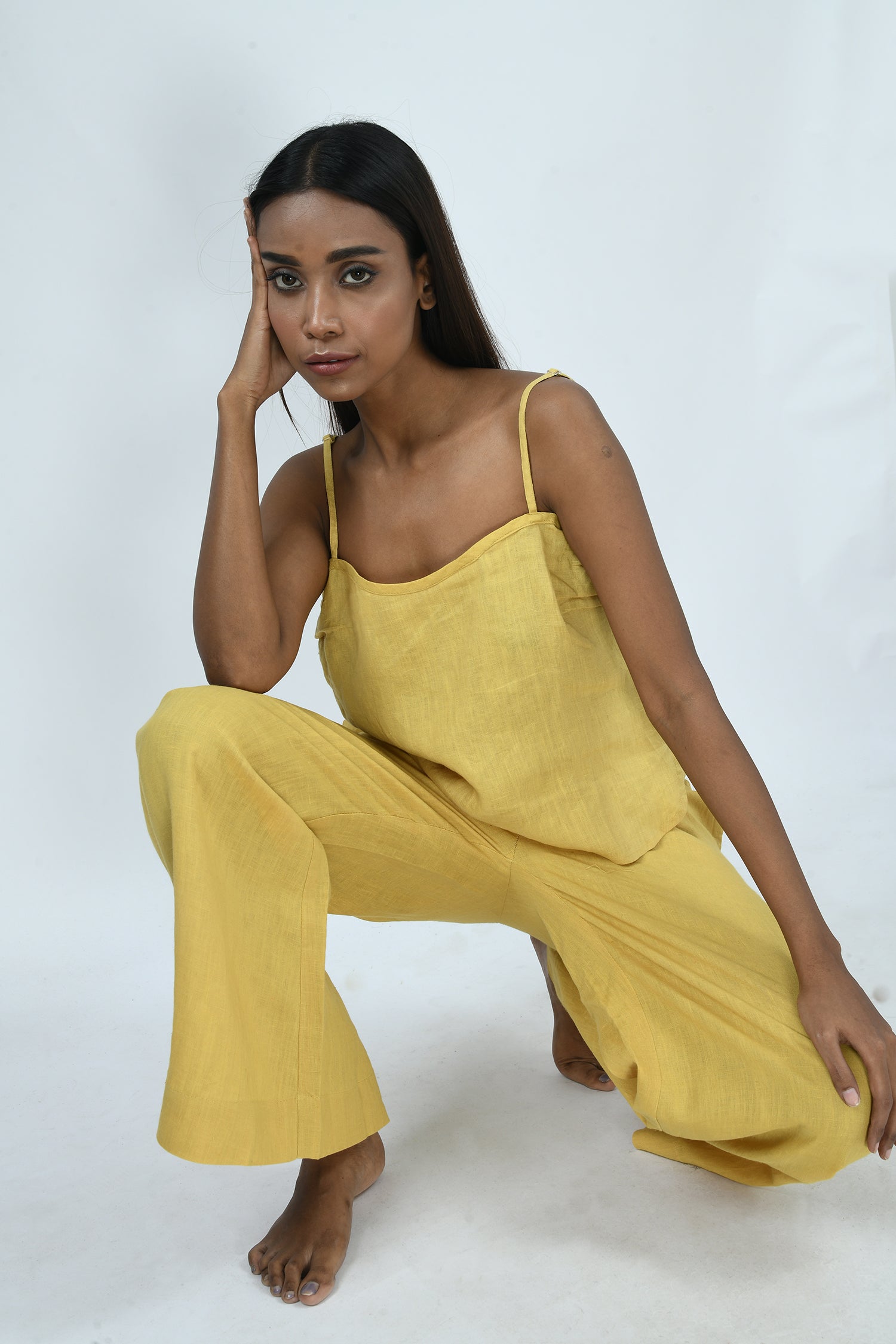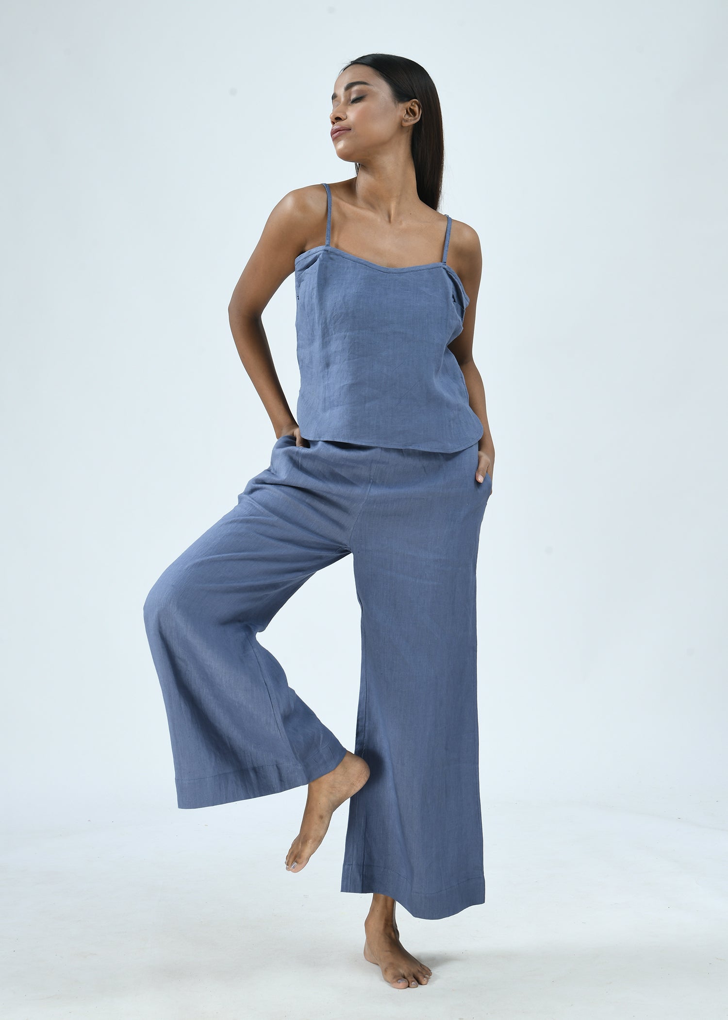 A vintage style cami with elegant lines, slightly cropped to pair perfectly with our Bobby pants. Pants you won’t want to take off for days. With a flat front and elastic back, slim side pockets and a wide leg, they are comfortable, structured and oh so flattering.