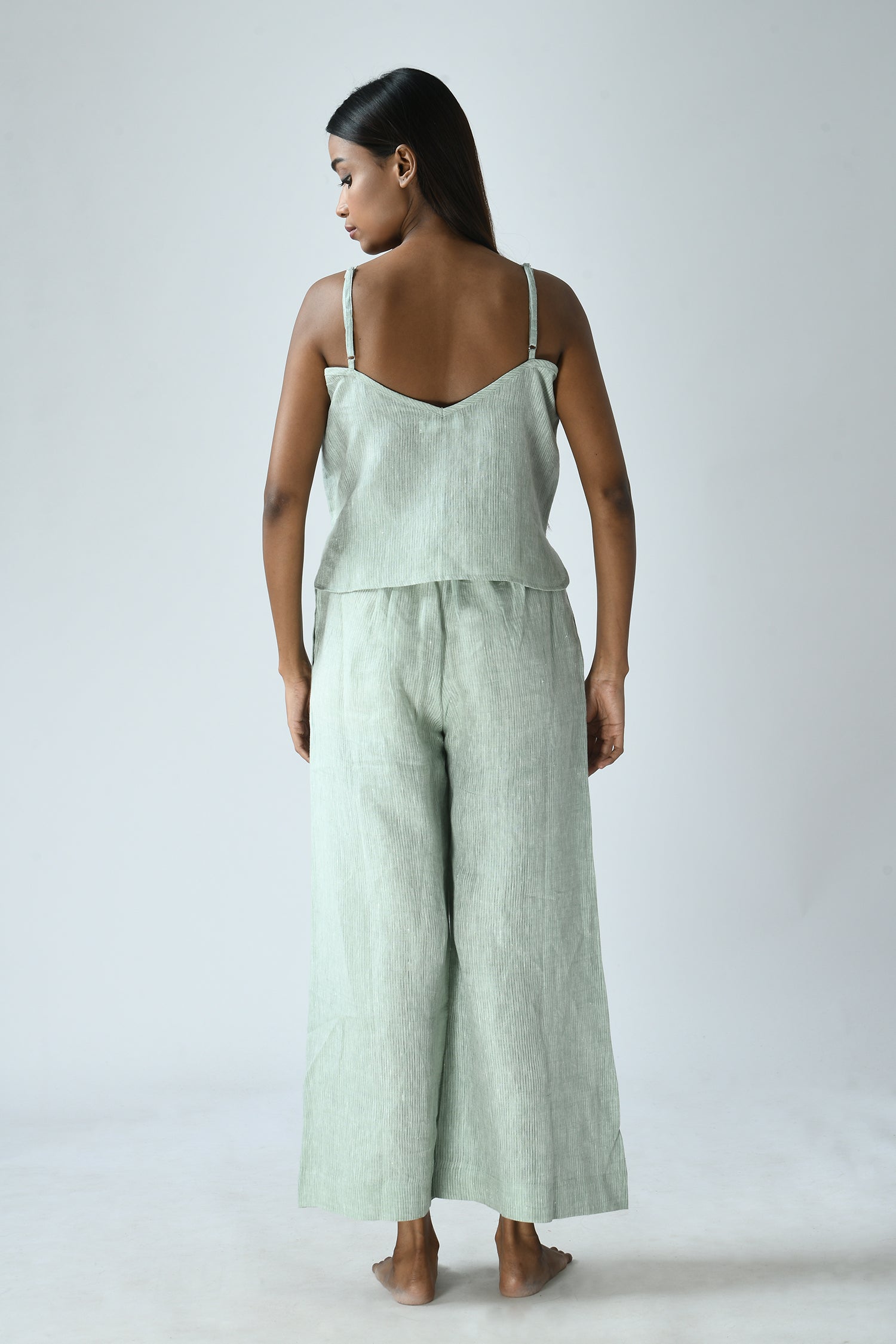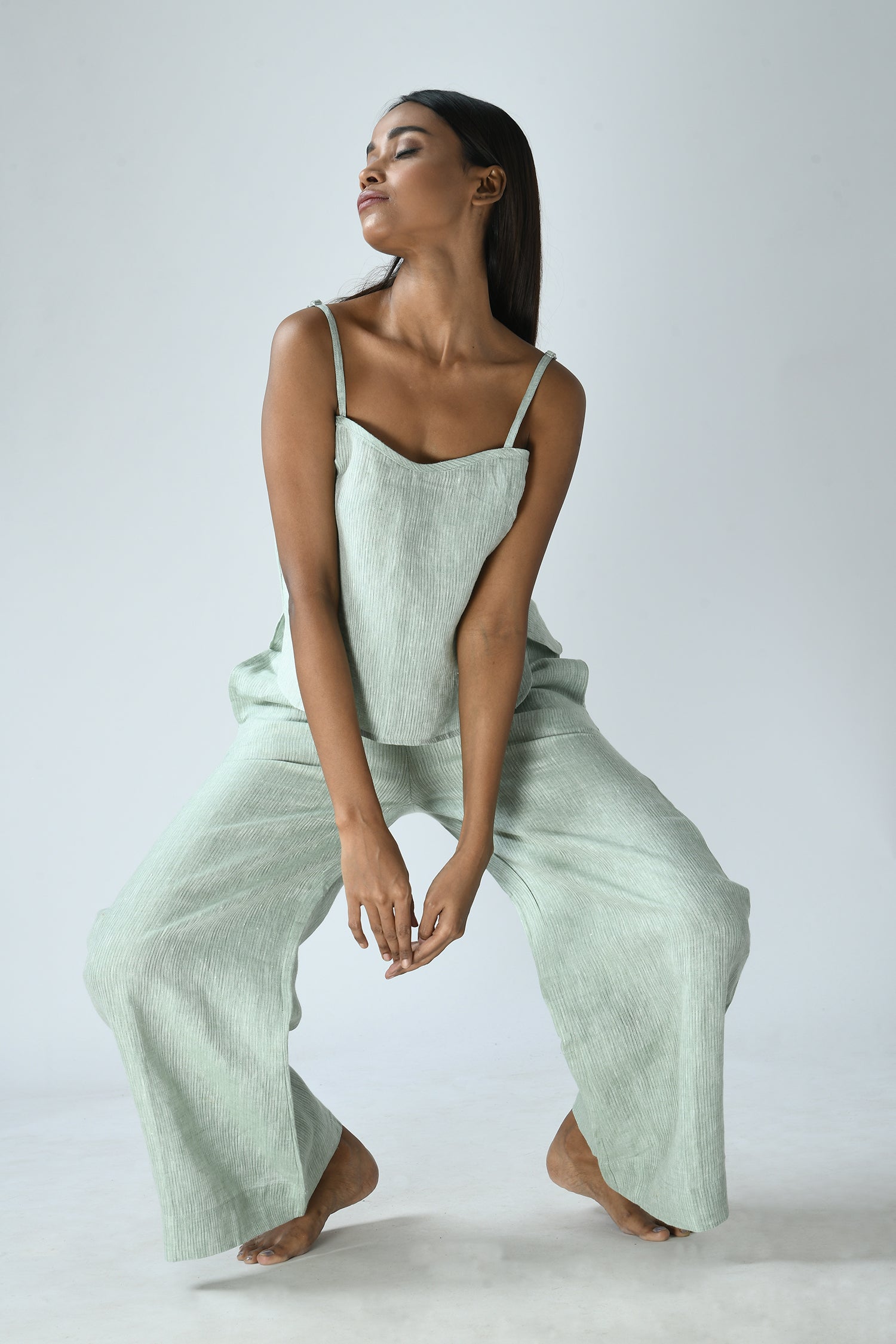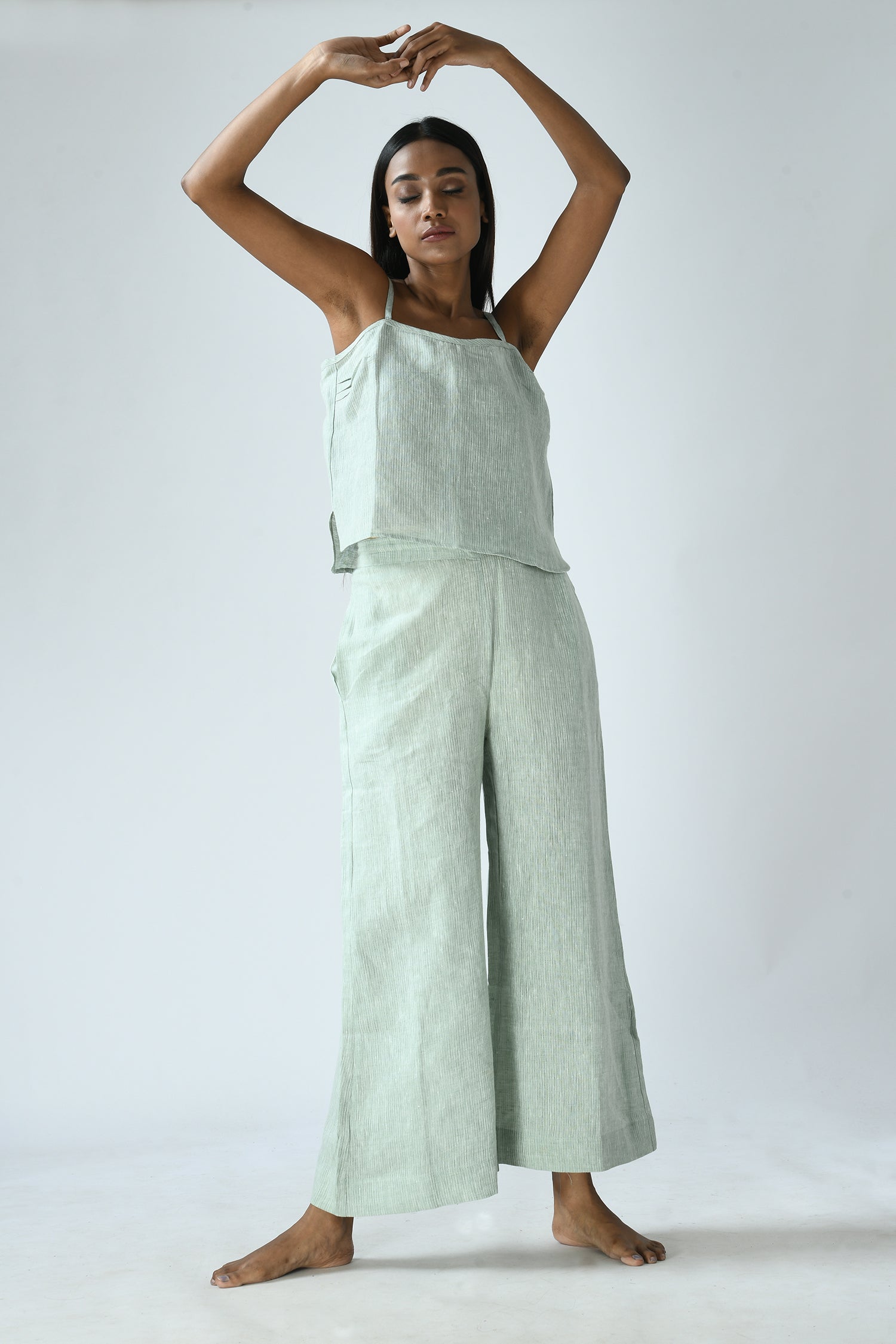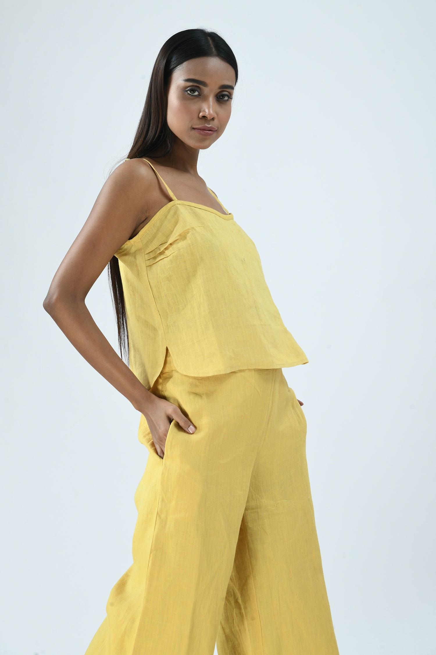 A vintage style cami with elegant lines, slightly cropped to pair perfectly with our Bobby pants. Pants you won’t want to take off for days. With a flat front and elastic back, slim side pockets and a wide leg, they are comfortable, structured and oh so flattering.