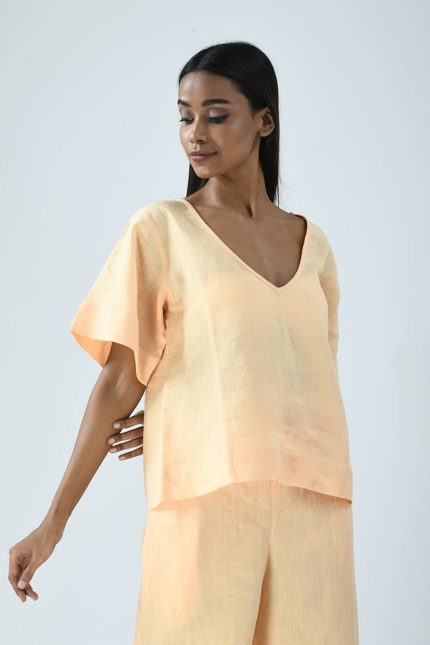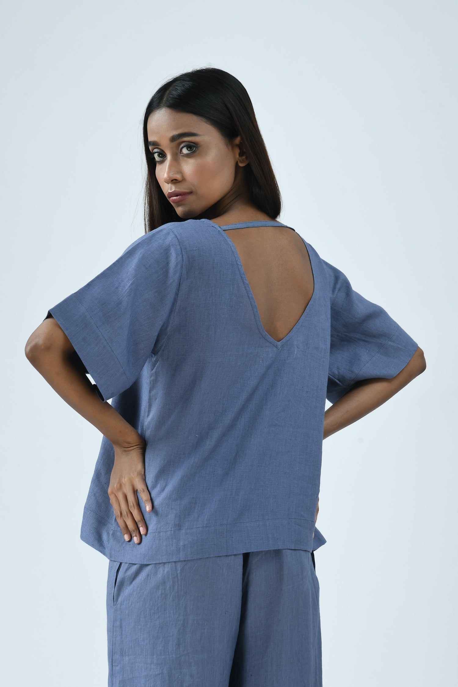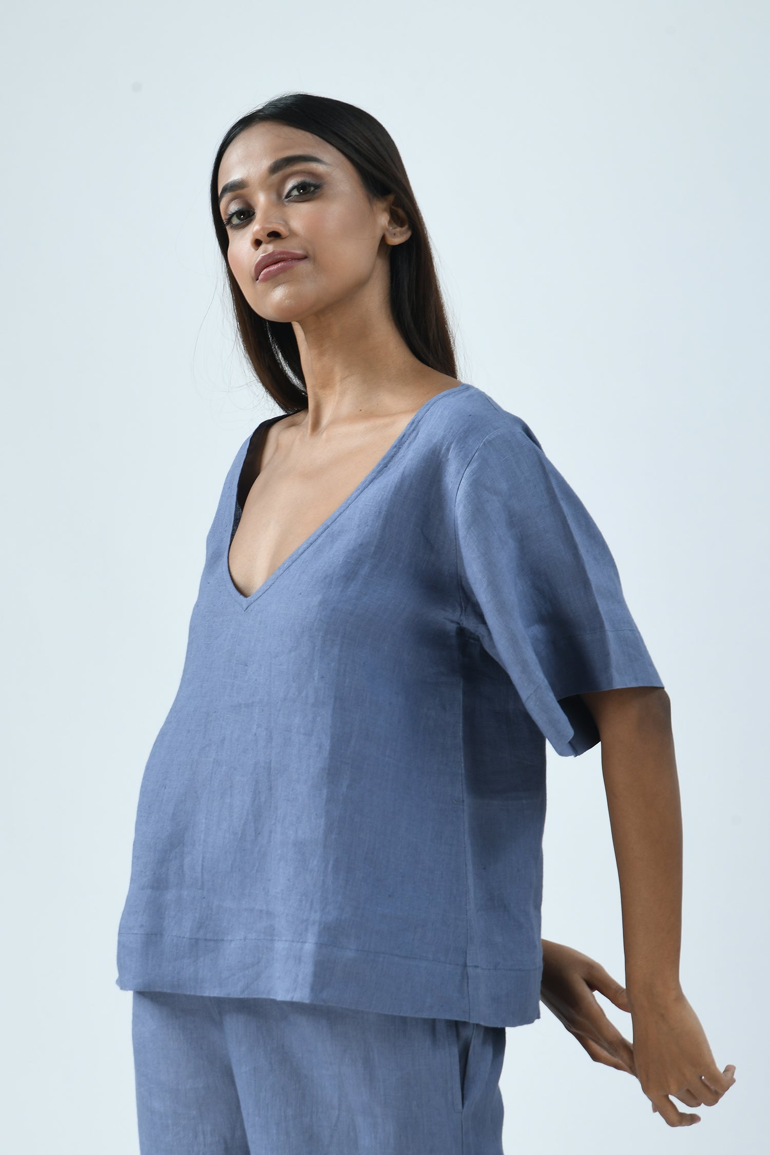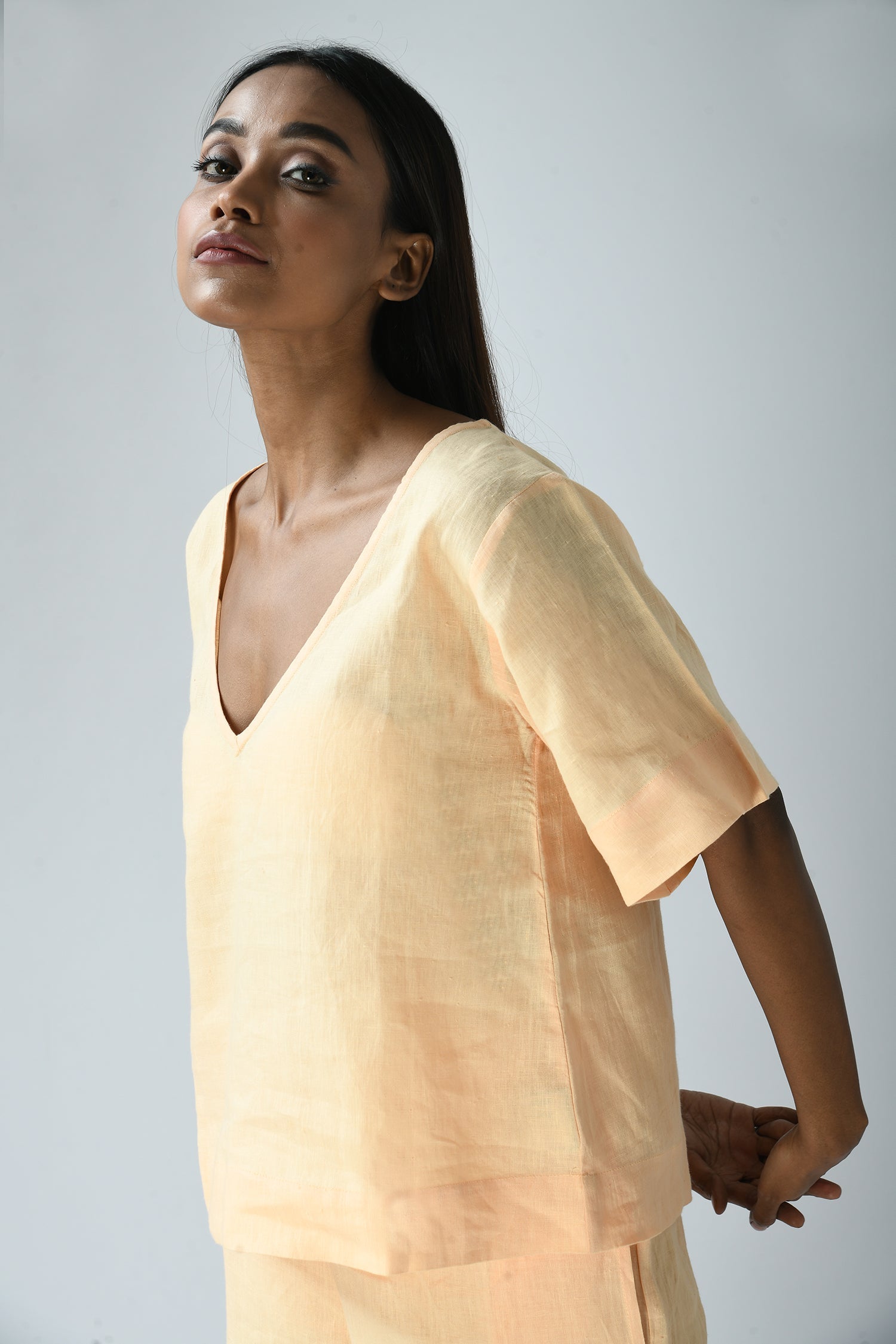 The easy elegance of linen combined with its deep-V’s front and back makes the airy Nina top effortlessly dressed up or down.