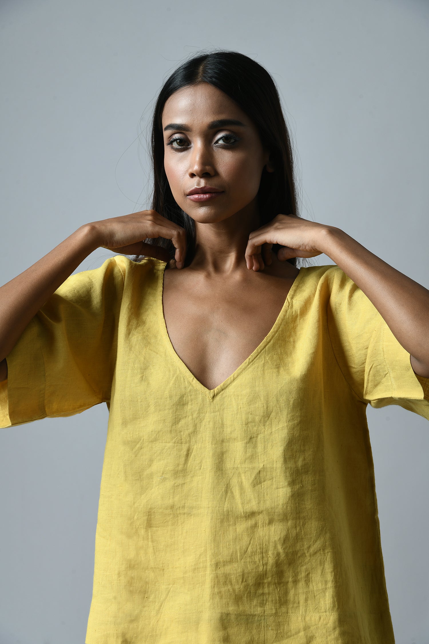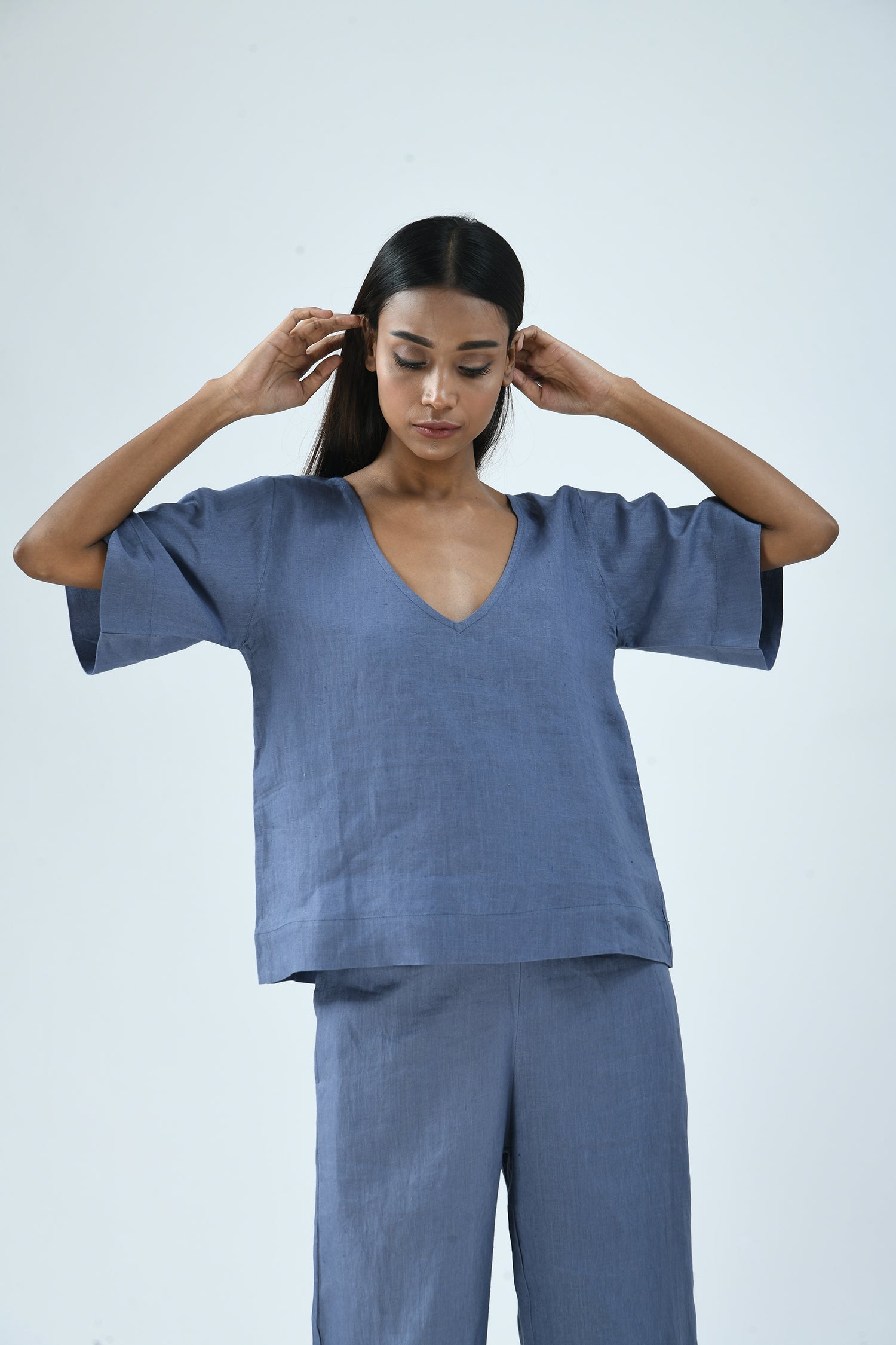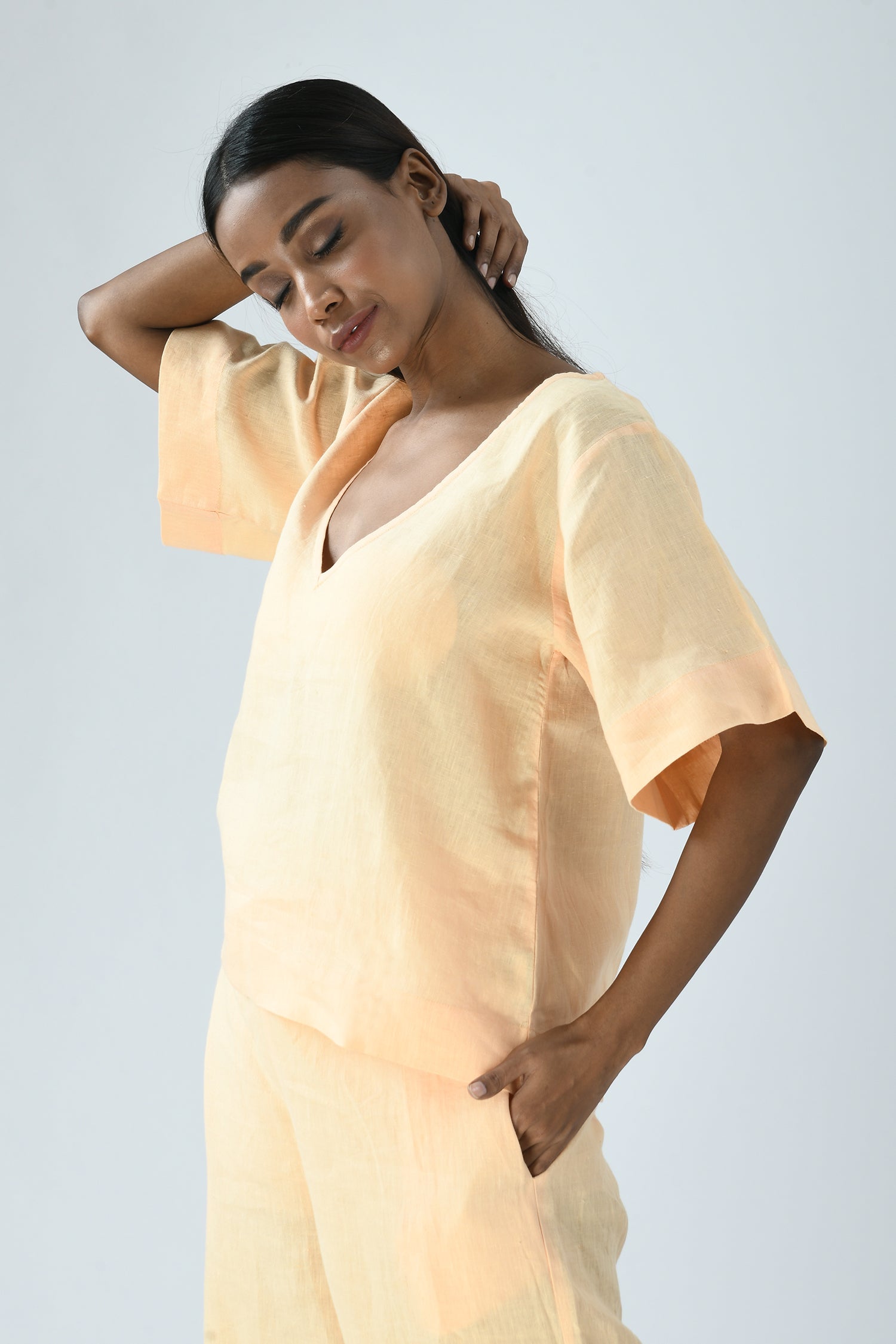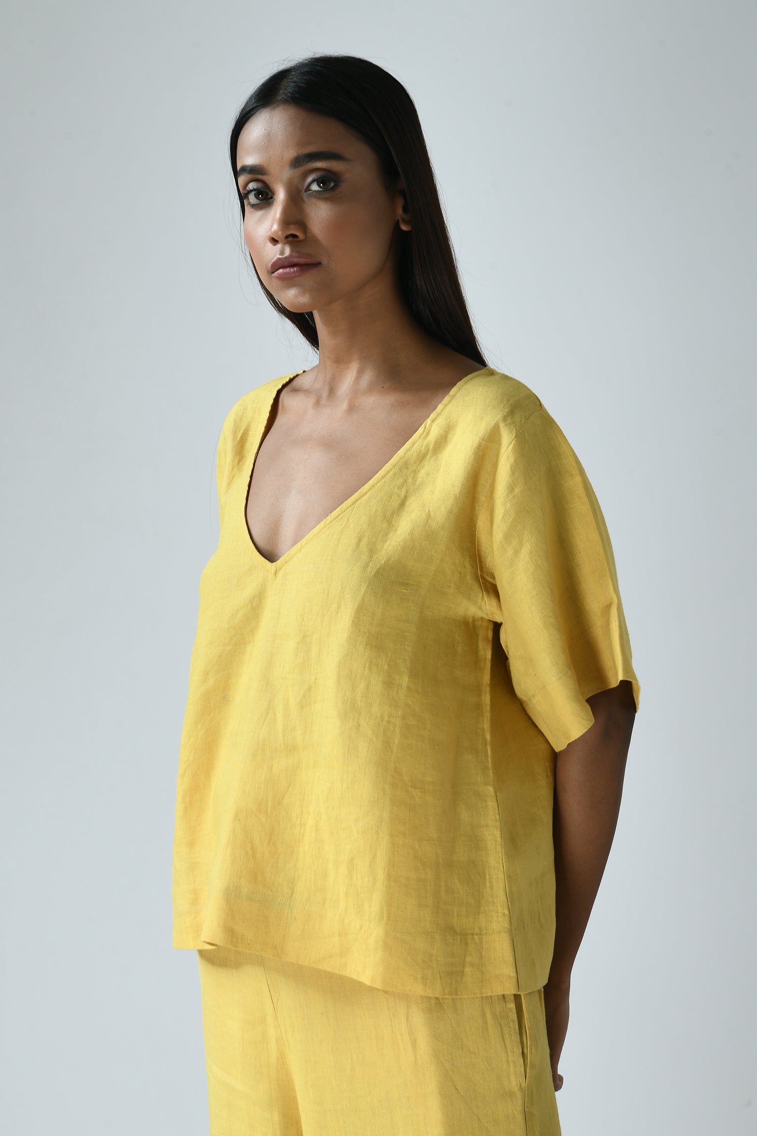 The easy elegance of linen combined with its deep-V’s front and back makes the airy Nina top effortlessly dressed up or down.