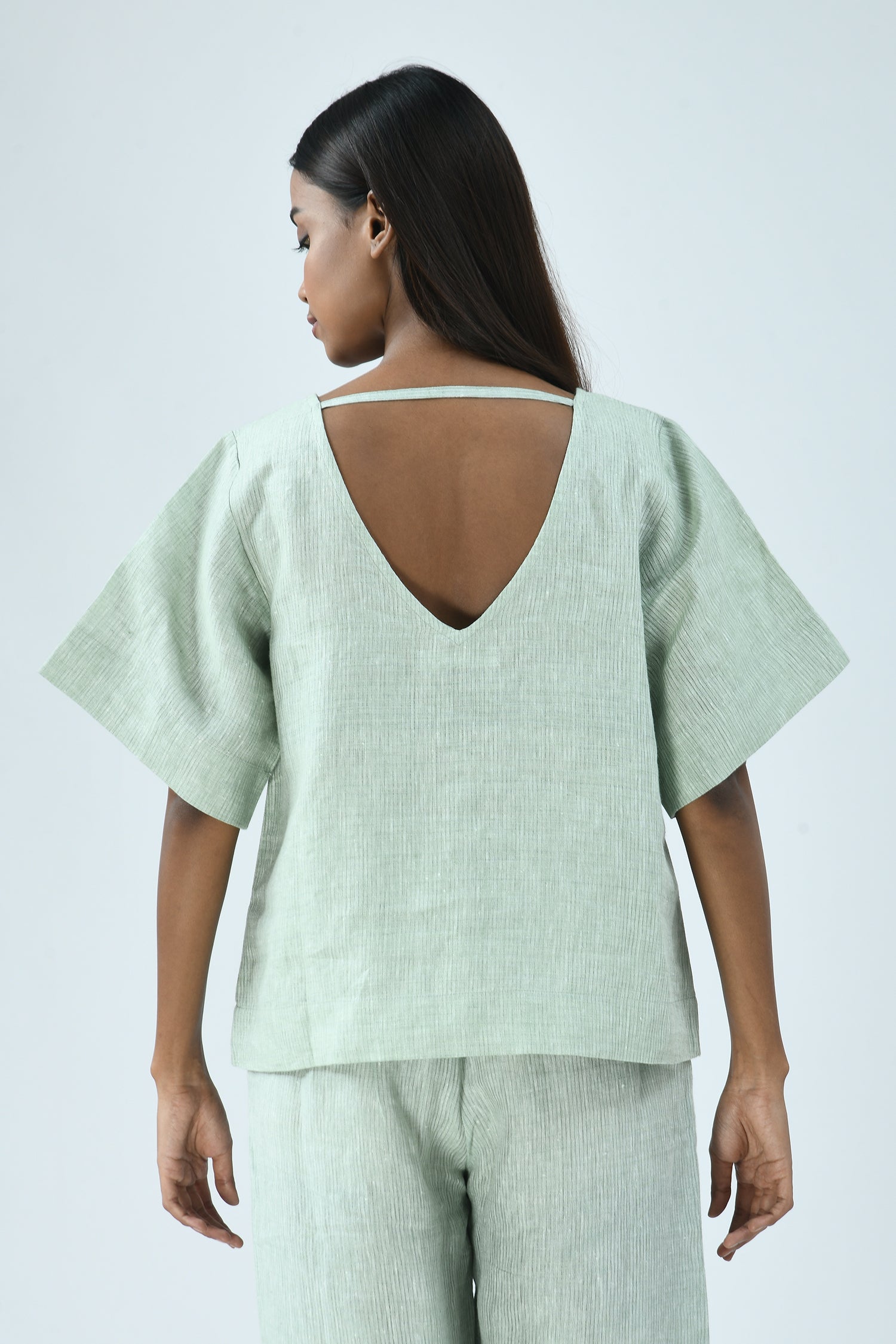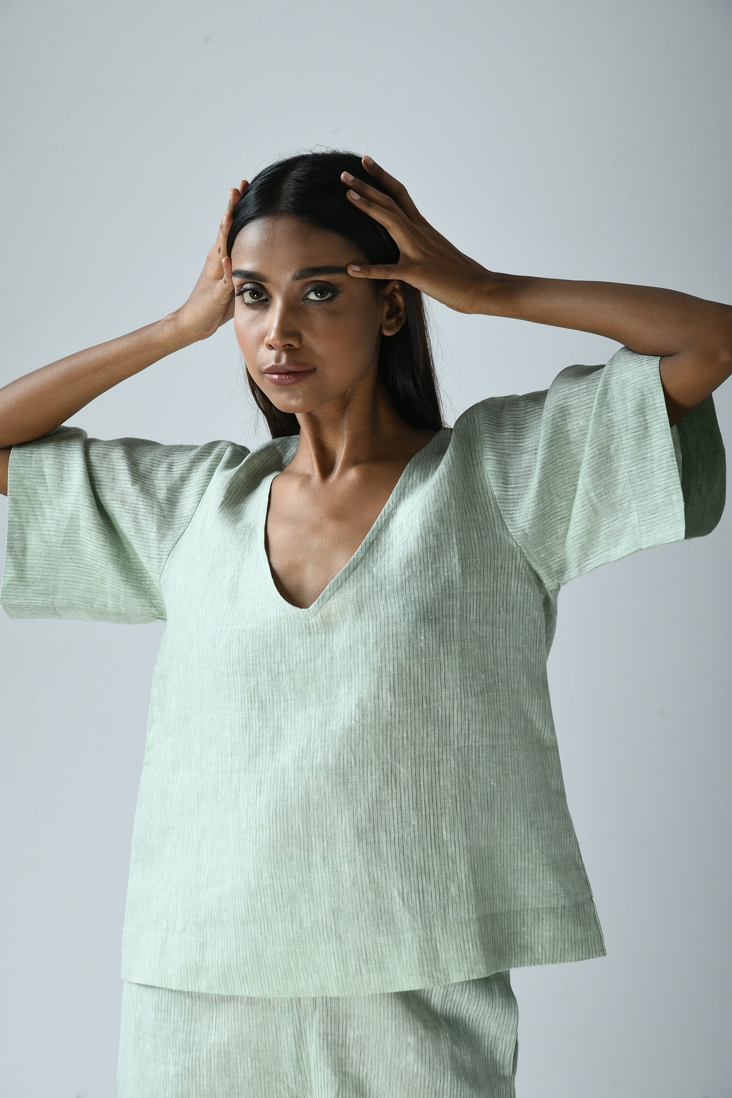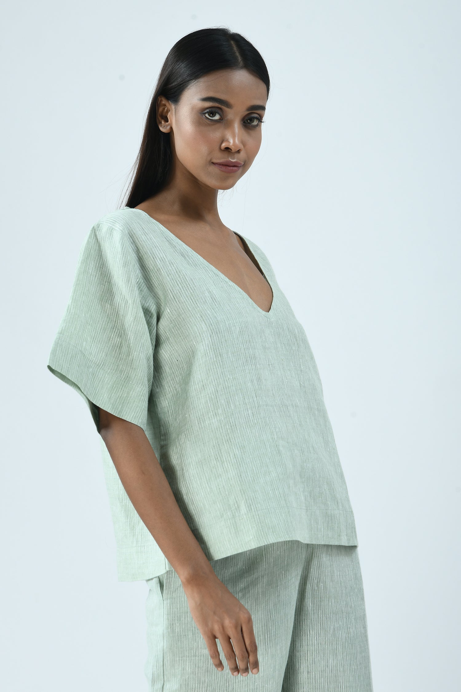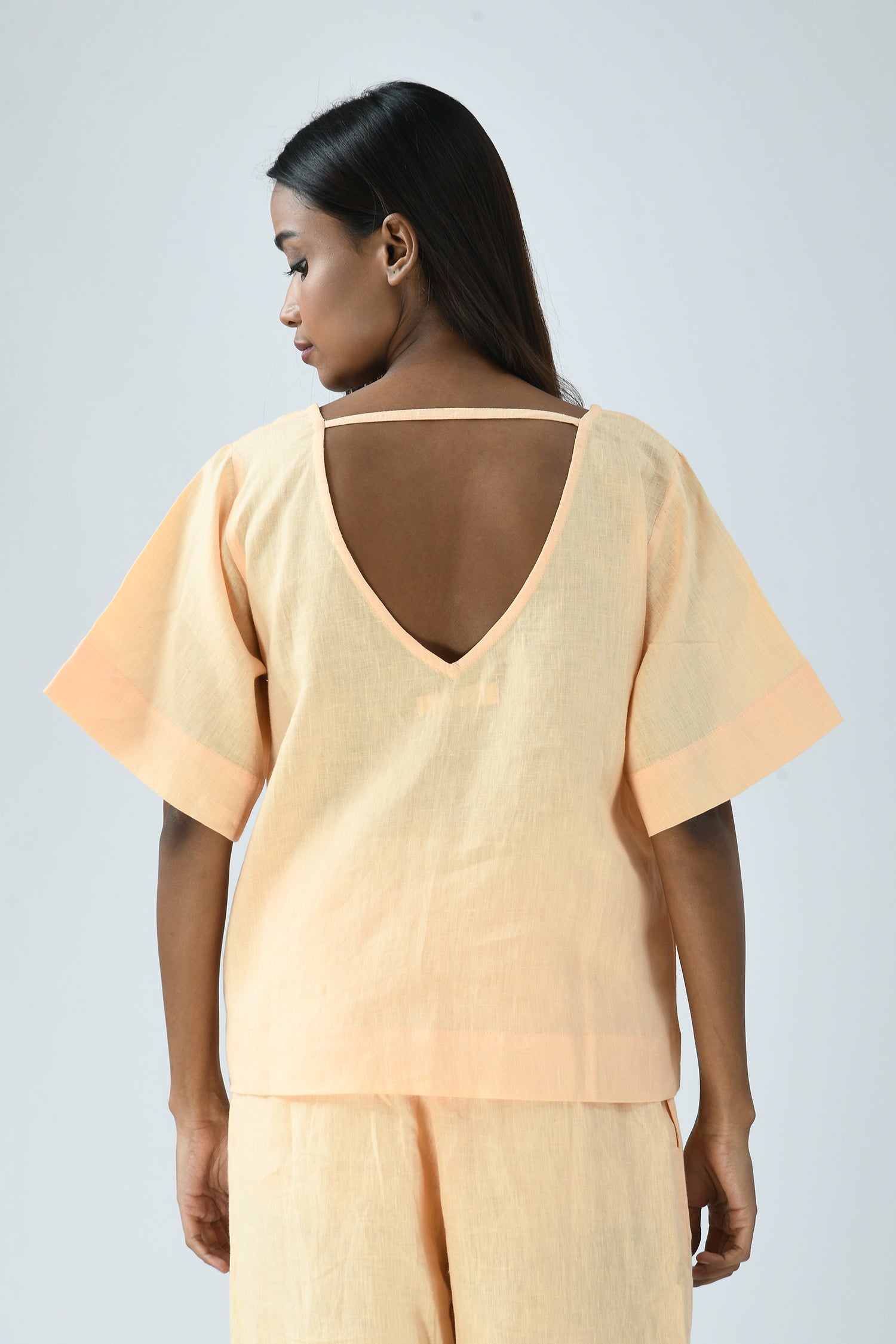 The easy elegance of linen combined with its deep-V’s front and back makes the airy Nina top effortlessly dressed up or down.
