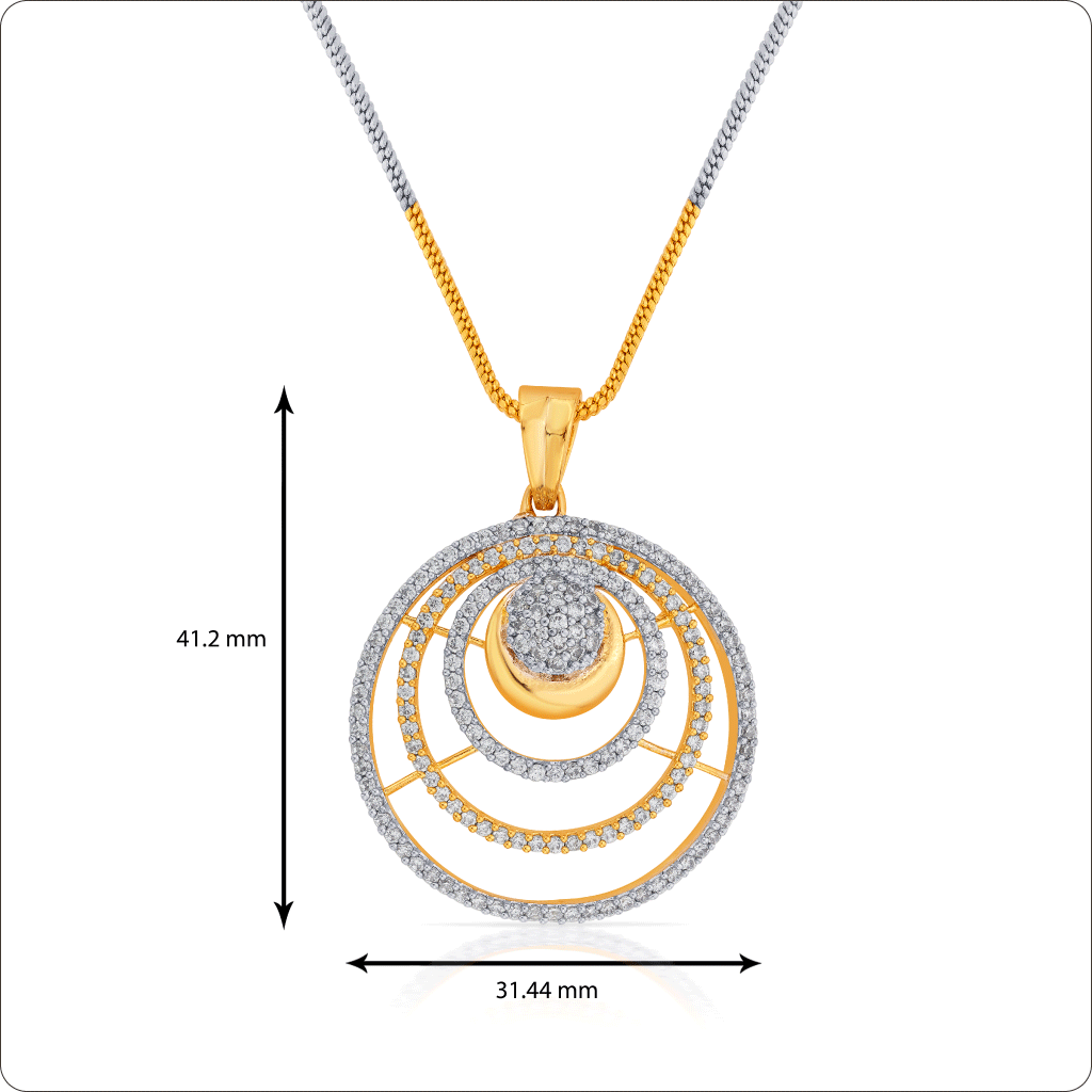 A pretty looking set that is great to be bought for oneself or gifted to a dear one, this pendant and earring duo is timeless! The delicate design and elegant look of this set make it a lovable one for jewellery lovers. Designed from brass, this set comes with a gold plating and is studded beautifully with CZ stones