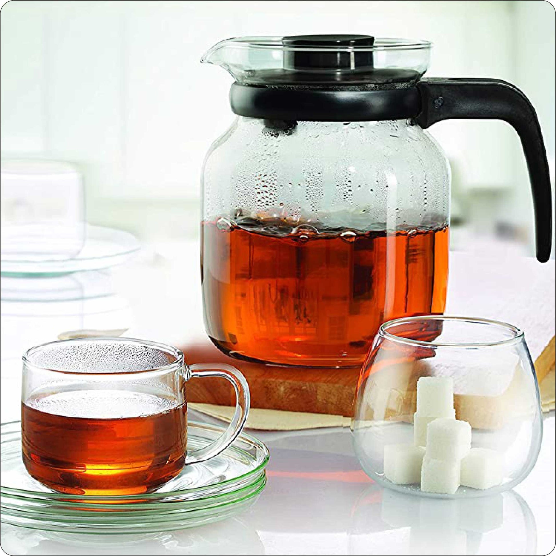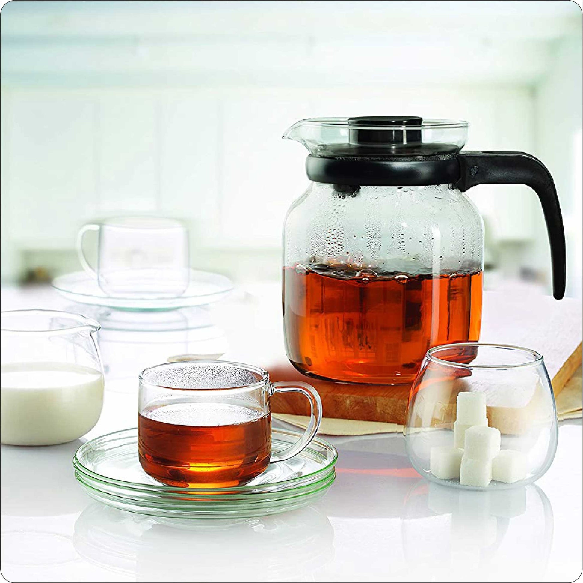 Piccoletta Tea set-6 cups & saucers, Carafe 1000ml milk & sugar pots Glass Carafe with PP lid and handle